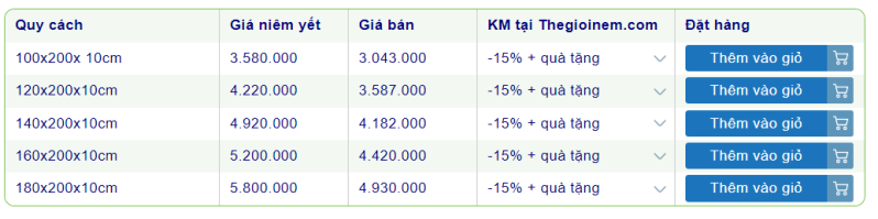 Nệm Vạn Thành 10cm giá bao nhiêu?