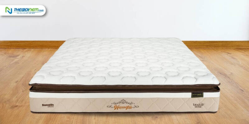 Nệm Harrington có bổ sung lớp cao su thiên nhiên giúp gia tăng sự đàn hồi và hỗ trợ nâng đỡ cơ thể. Cấu trúc hàng ngàn lỗ nhỏ của lớp cao su cho phép nhiệt trong nệm được thoát ra ngoài, tránh hầm bí / nóng lưng, mang đến cảm giác thoáng mát hơn cho người nằm.