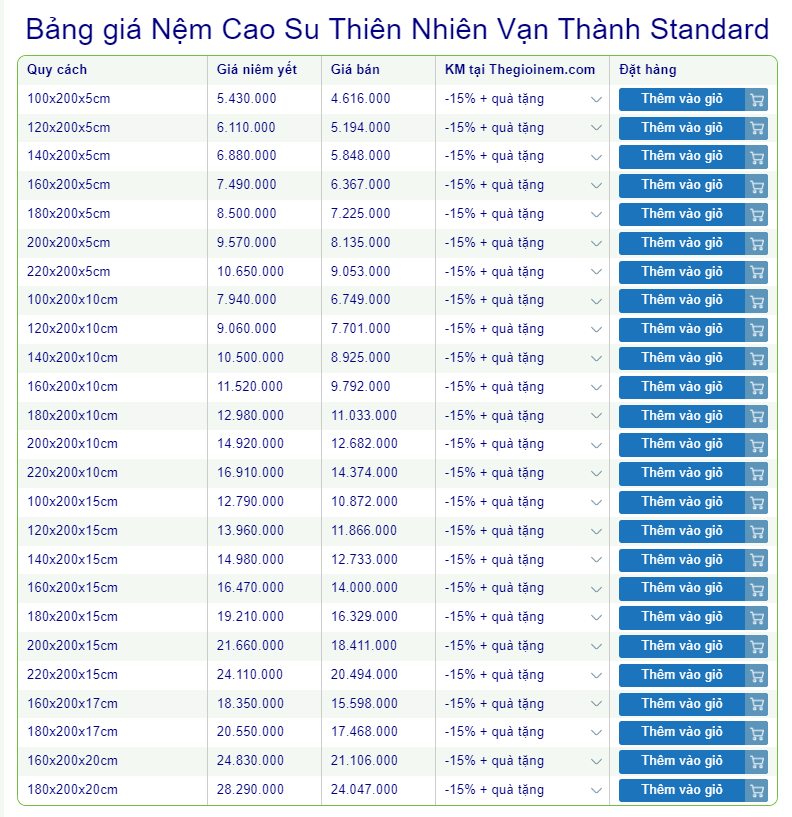 - Nệm cao su Vạn Thành Standard
