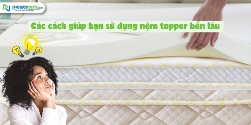 Mặc dù nói nệm topper là vật dụng có nhiều lợi ích trong việc hỗ trợ chăm sóc giấc ngủ. Nhưng nếu bạn sử dụng nệm topper không đúng cách hoặc bảo quản sai cách thì cũng sẽ làm giảm chất lượng nệm lót, khiến nệm dễ bị hư hỏng. Sau đây, Thegioinem.com sẽ mách bạn các cách giúp bạn sử dụng nệm topper được bền lâu:
