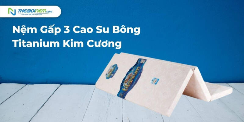 - Nệm Gấp 3 Cao Su Bông Titanium Kim Cương được sản xuất kết hợp từ chất liệu cao su thiên nhiên cùng sợi bông ép sạch khuẩn, có độ cứng vừa phải và độ đàn hồi tối ưu, không bị xẹp lún giúp bảo vệ cột sống tối ưu mang đến cảm giác êm ái khi sử dụng. Nệm còn đạt nhiều chứng chỉ như SGS, QMS về sản phẩm cao su thiên nhiên kháng khuẩn, không có côn trùng lưu trú. Ngoài ra,nệm còn giúp lưu thông máu huyết trên cơ thể diễn ra thuận lợi, mang lại một giấc ngủ sâu toàn vẹn cho người dùng.