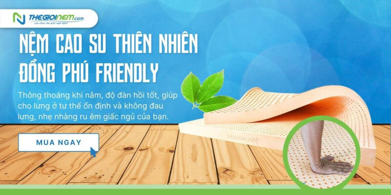 8. Nệm Cao Su Thiên Nhiên Đồng Phú Friendly được sản xuất từ 100% cao su thiên nhiên, thông thoáng khí, đàn hồi tốt ổn định tư thế khi nằm nhẹ nhàng ru êm giấc ngủ của bạn. Nhờ vào chất liệu cao su tự nhiên mà nệm sở hữu khả năng tự kháng khuẩn, chống nấm mốc và ngăn chặn sự hình thành các vi khuẩn bên trong nệm mang đến sự an toàn cho người sử dụng.