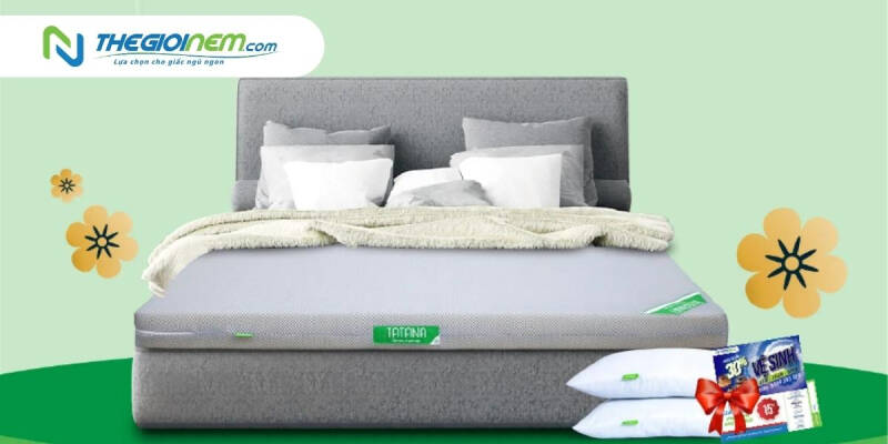 • Khi mua nệm cao su Tatana tại cửa hàng Thegioinem.com bạn sẽ nhận được vô số quà tặng hấp dẫn cùng với đó các ưu đãi đặc biệt.