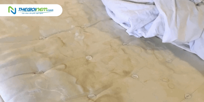 Ngoài ra, nếu giường nệm bị ẩm lâu ngày, nấm mốc sẽ phát triển mạnh và tạo ra các vết ố vàng. Nếu không xử lý kịp thời, các vết này sẽ lan rộng ra và rất khó để loại bỏ. Do đó, giường nệm sẽ mất đi tính thẩm mỹ và gây cảm giác khó chịu khi sử dụng. Vì vậy, khi phát hiện các vết ố nhỏ, cần giặt ga giường nệm và phơi khô để ngăn chặn các vết ố lan rộng.
