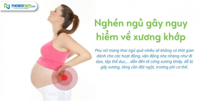 Phụ nữ mang thai ngủ quá nhiều sẽ không có thời gian dành cho các hoạt động, vận động nhẹ nhàng như đi dạo, tập thể dục,… Điều đó dẫn đến tê cứng xương khớp, dễ bị gãy xương, tăng cân đột ngột, trương phì cơ thể.