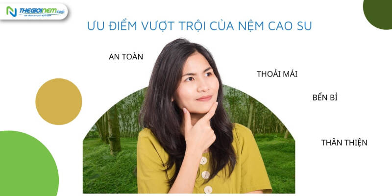 • An toàn với sức khỏe người sử dụng: Nhờ được làm từ nguồn nguyên liệu tự nhiên, an toàn, cùng với công nghệ sản xuất hiện đại, quá trình kiểm tra nghiêm ngặt, loại bỏ hoàn toàn tạp chất và vi khuẩn gây hại, nệm cao su an toàn với mọi làn da dù là mỏng manh nhất.