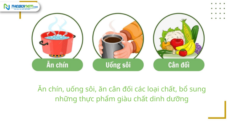 • Thực hiện chế độ ăn uống khoa học: Để loại bỏ những vi khuẩn xâm nhập vào đường ruột, tăng cường khả năng tiêu hóa và hệ miễn dịch, bạn nên thực hiện chế độ ăn chín, uống sôi. Vệ sinh thực phẩm một cách kĩ càng trước khi sử dụng. Ăn uống những thực phẩm lành mạnh và nhiều chất dinh dưỡng như rau xanh, trái cây, sữa,...