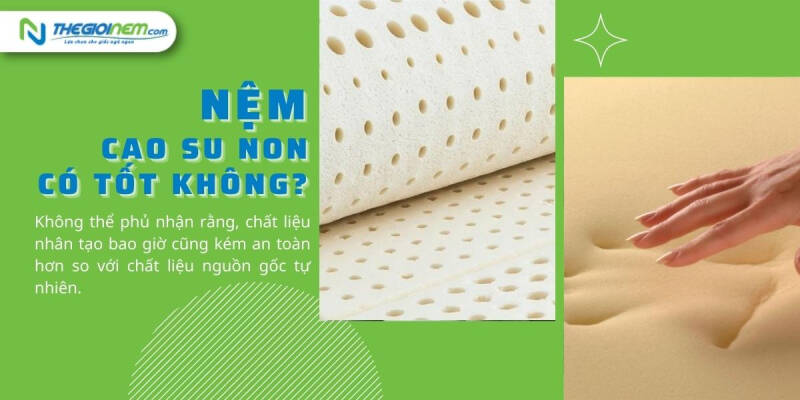 Không thể phủ nhận rằng, chất liệu nhân tạo bao giờ cũng kém an toàn hơn so với chất liệu nguồn gốc tự nhiên. Những sản phẩm nệm cao su non nhân tạo cũng sẽ có những tiêu chuẩn riêng cần đạt trước khi tung ra thị trường. Người dùng cũng có thể an tâm chọn mua miễn là chất lượng sản phẩm đúng như những gì nhà bán cam kết.