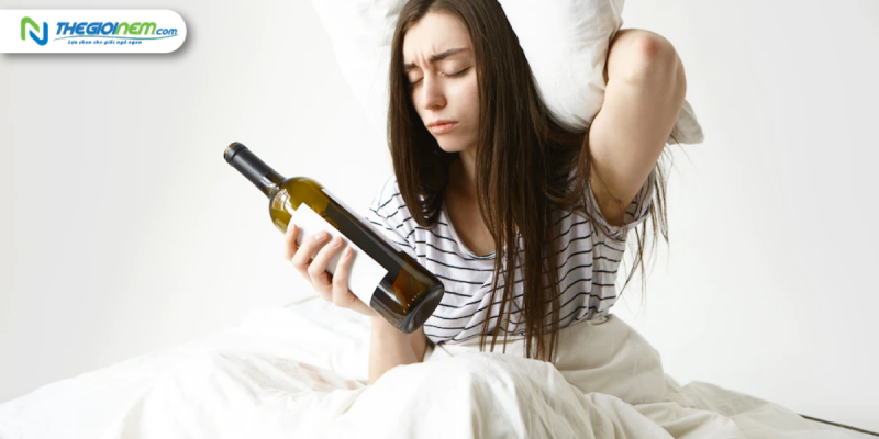 Rượu, bia, trà, cà phê đều là những chất kích thích có tác hại làm giảm chất lượng giấc ngủ. Ngoài ra, chúng còn gây ra tình trạng tiểu đêm, khiến giấc ngủ bị chập chờn, ngủ không sâu giấc và là một trong những nguyên nhân gây ra tình trạng sáng ngủ dậy người nóng và đau đầu.